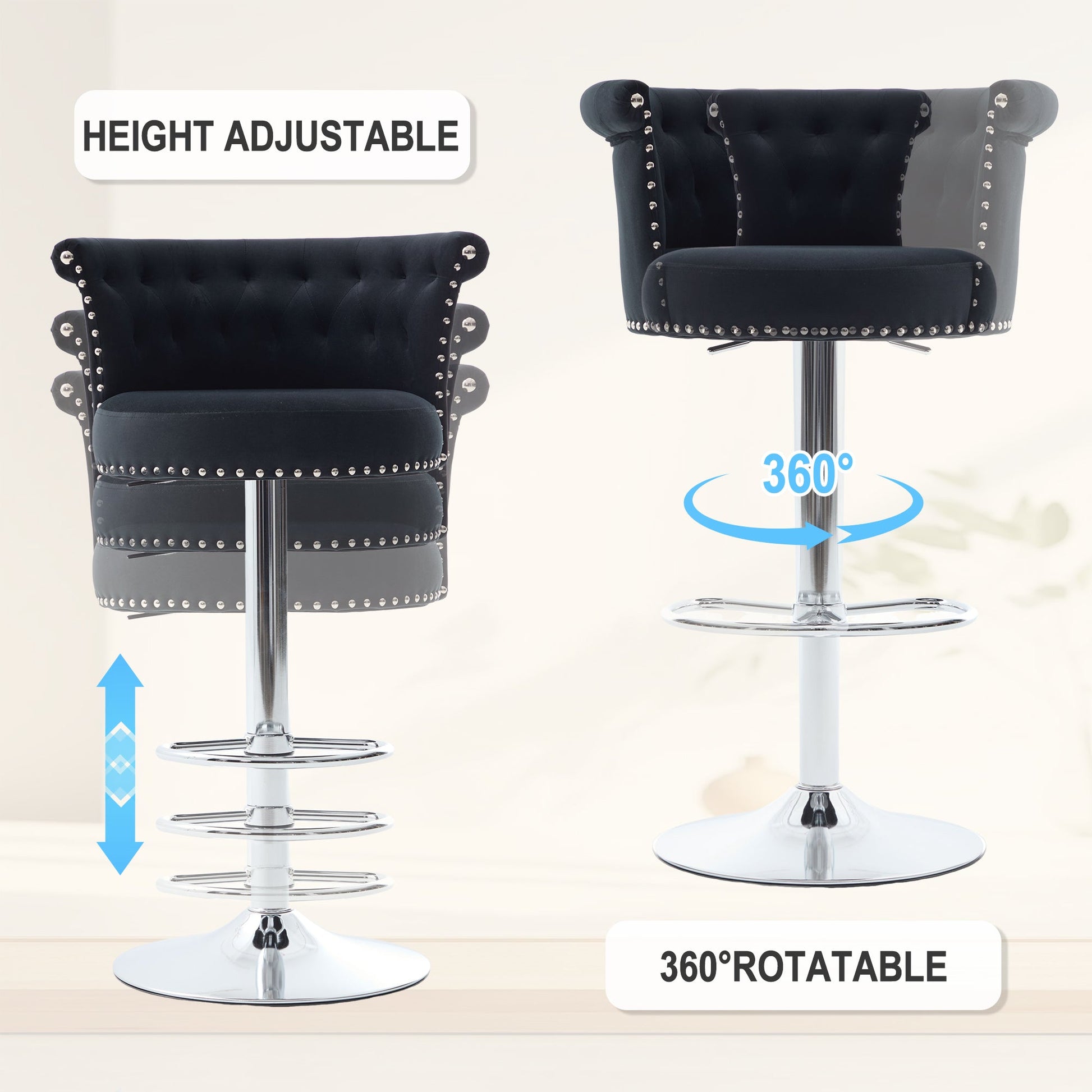 Velvet Bar Stool Set Adjustable Swivel Bar Stools with Silver